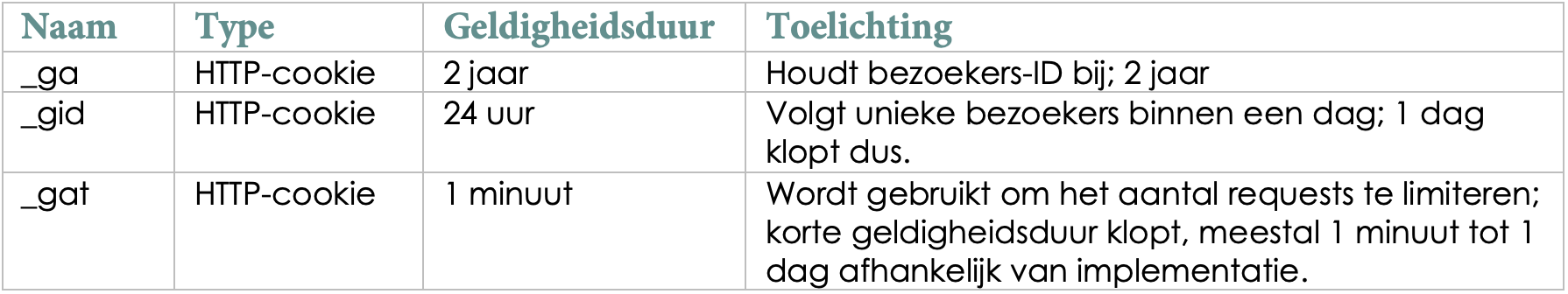 Artikel 4. Welke cookies gebruikt By Colette, voor welk doel en wat is de geldigheidsduur?